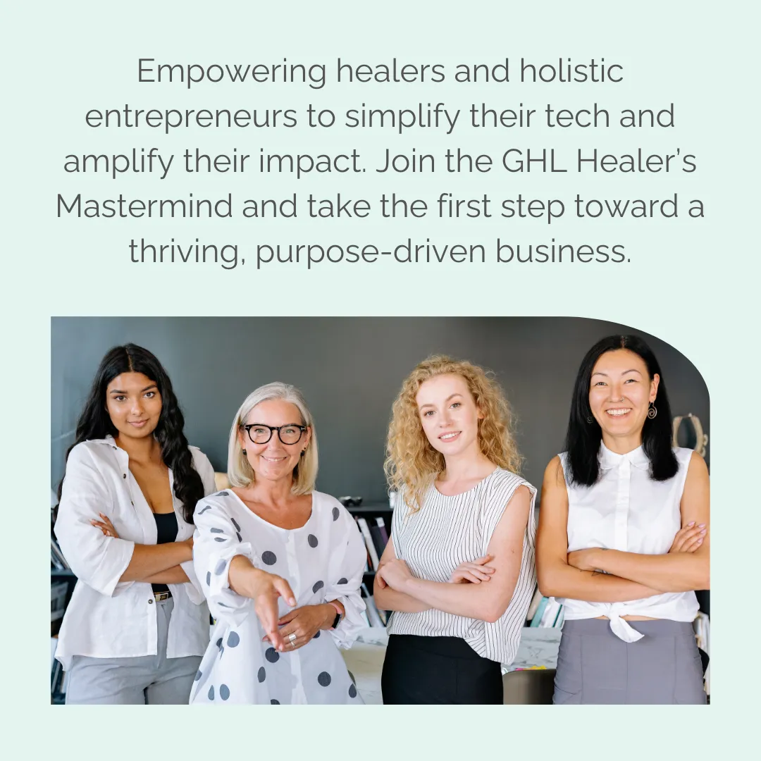 The Healers Mastermind is a support program designed to help healers and holistic entrepreneurs streamline their business systems, attract clients, and focus on their calling. We provide Go High Level (GHL) support to simplify your tech, automate your processes, and help you grow your business with ease.